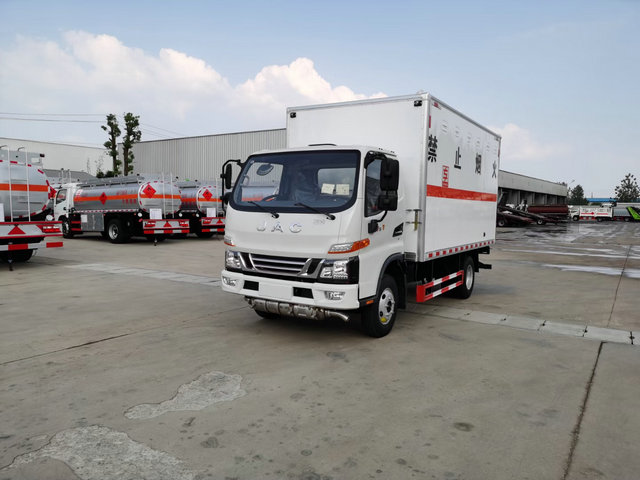 如图所示,就是领导们订购的批量小型危险品货车,封闭式的货箱结构形式,满足液化气配送对于密封环境的要求,此款车型厢体长度为2.8米,整车长度4.6米,宽度为1.64米,所以首先尺寸来说,非常满足领导们对于配送尺寸的要求,其次和过去以往的车型相比,此款采用的是后单轮的车型,单轮的车型在运输的时候,更稳定轻便一些,可以达到一个非常轻松的效果。