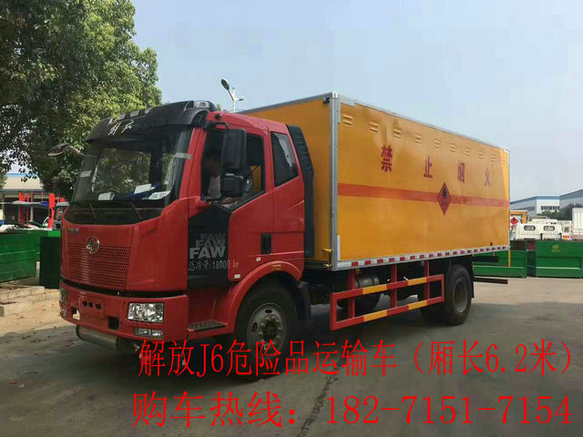 丽水客户采购解放J6危爆车浙江丽水是我国的先进环卫城市,旅游城市,此次丽水莲都区曾总的工矿企业需采购两台危爆器材运输车,我公司生产的解放J6危险品车,厢长6200X2300X2400(MM),大柴180马力发动机,八档变速箱,运输10.8吨左右,曾总一行毅然决定采购解放J6这款,祝您生意兴隆,用车顺利。