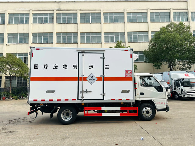 医疗废物专用车如图所示,这是一款针对有效的各种医疗废弃物品运输的车型,其内部配备的设备装置等能够保障我们运输过程当中的安全稳定性,和过去的普通车型有什么不同呢,该车带有降低温度的制冷温度机,保障货箱内部所运输的货物得到一个稳定的适合程度,在经过有效的统计,当温度达到零下的温度,能够有效的降低细菌微生物带来的感染,以及内部配备紫外线消毒装置等,全方面的保障在装卸以及运输过程当中的安全稳定。