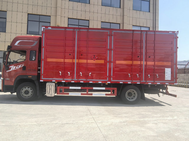 如图我们看到的此款车型,正是用于化工物品运输的厢式货车,该车严格的密封环境非常适合大家进行有效的安全保障化的运输方式,其特有的厢式货车类型结构,能够让我们更好的进行包装运输,以及在进行后续的方便操作装卸的时候也会更加的节省效率以及方便化的程度等要求。